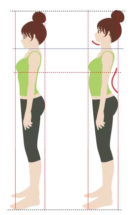 腰骨が前傾することでお腹が強調される形になり、前傾姿勢ではお腹の筋肉が緊張しにくいため、筋力が落ちる傾向があります。